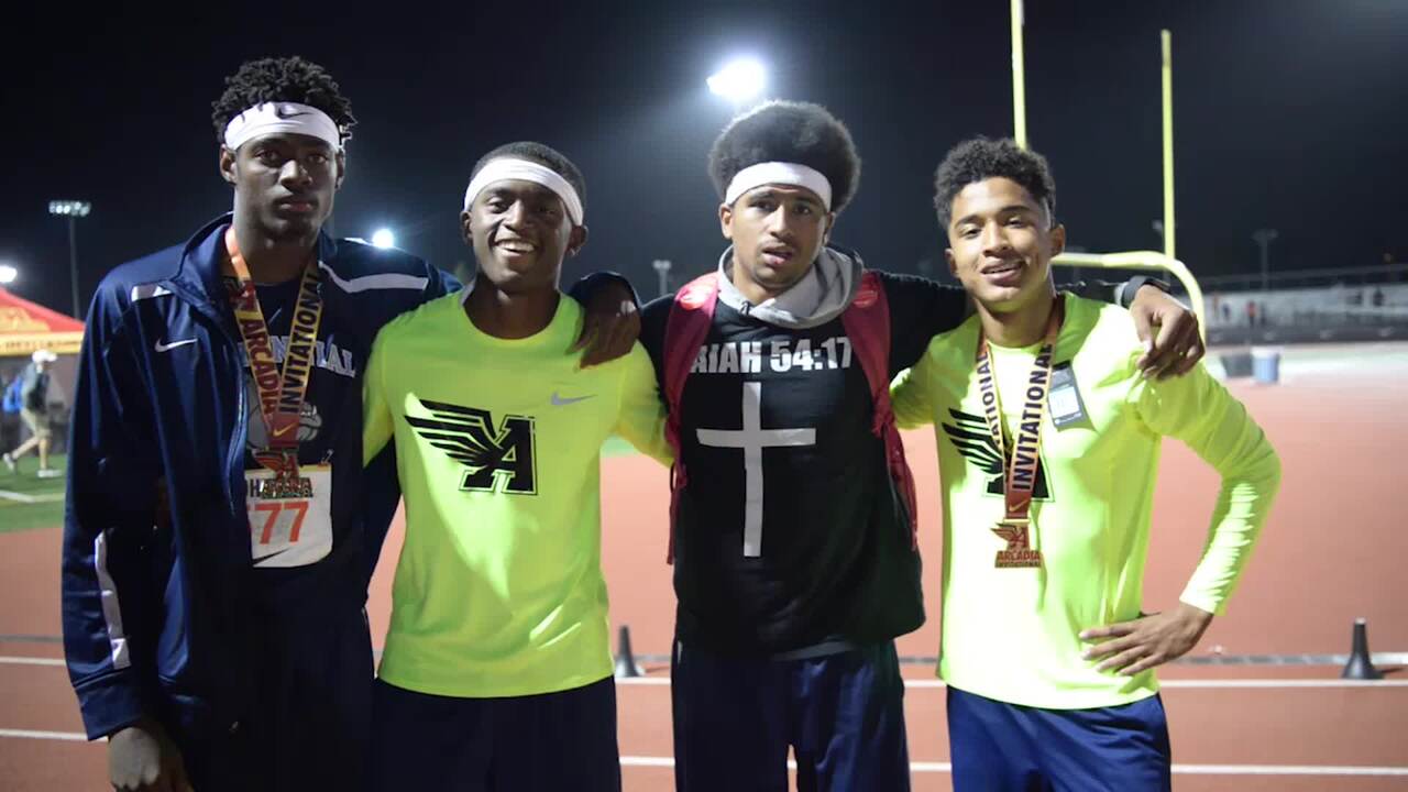 James Johnson, Randall Jubilee, Marvin Perkins Jr. and Tre Harley of Centennial NV 1st Boys 4x400m Relay - Arcadia Invitational 2017