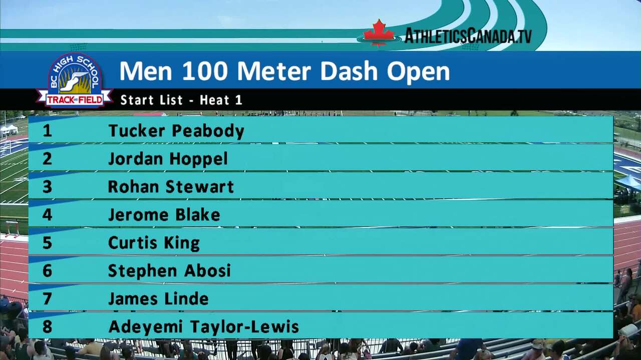 Men's 100m Semi-Final Heat 1 - BC Post Secondary Series 2015